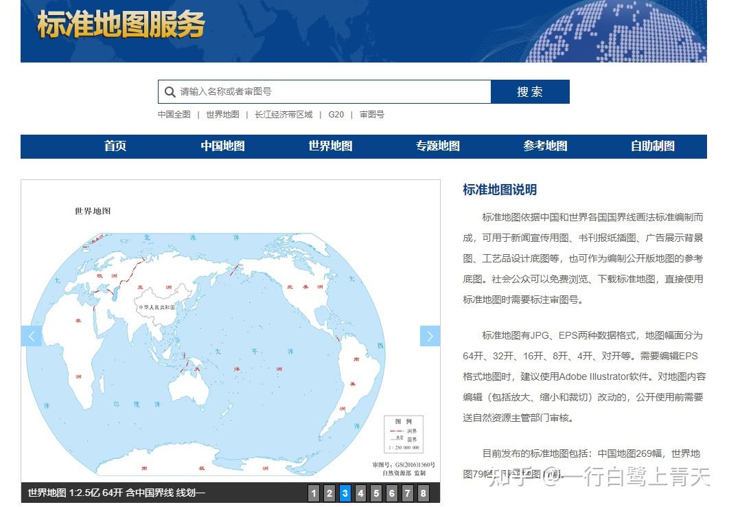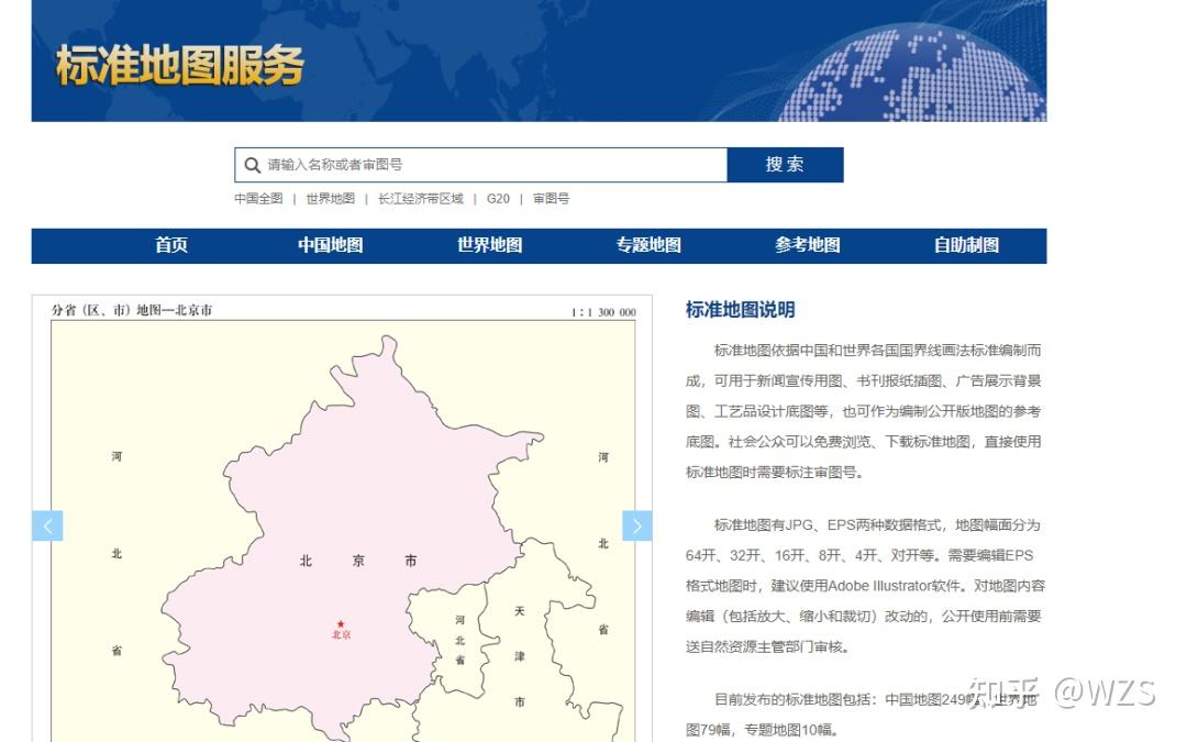 目前发布的标准地图包括中国地图249幅、世界地图79幅、专题地图10幅,提供JPG、EPS两种数据格式,可以免费浏览和下载。