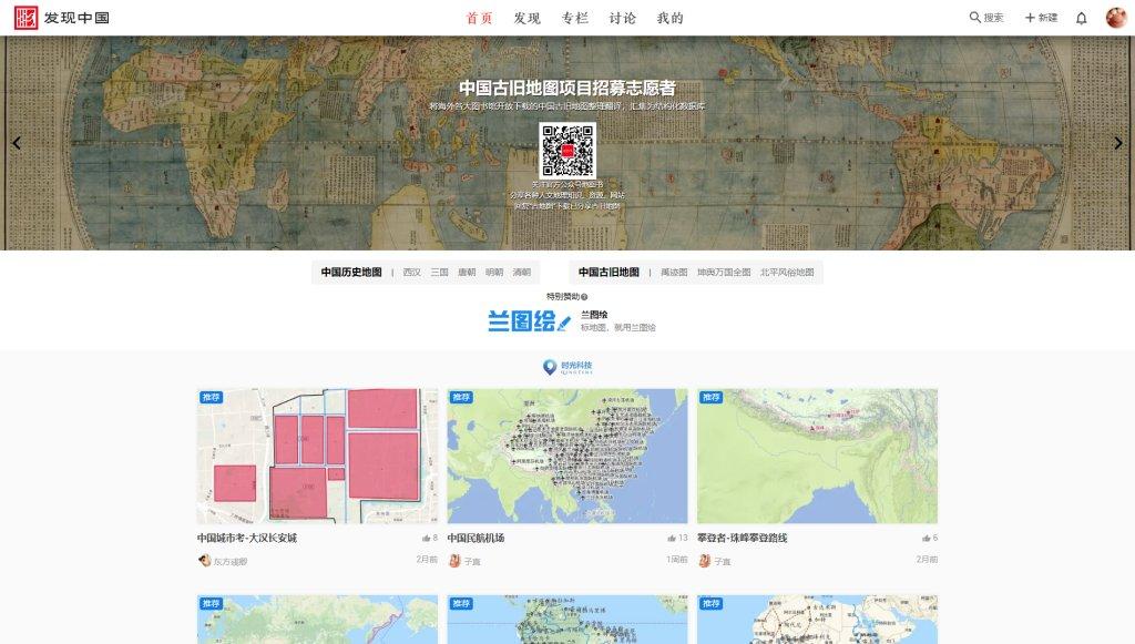 已经有一个答主介绍过了,网站上有一个中国古旧地图专栏,提供几十张比较著名的古旧地图。总体上而言网站上的地图偏少,不过可以给每个地图中的要素添加评论,很有意思。