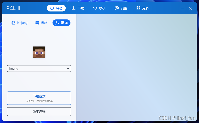 选择和设置,后期接触的比较多,再此不多赘述(PCL2整体界面很简洁)