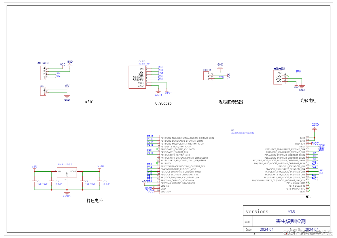 - STM32F103C8T6:用于所有程序的中控和模块数据通信;