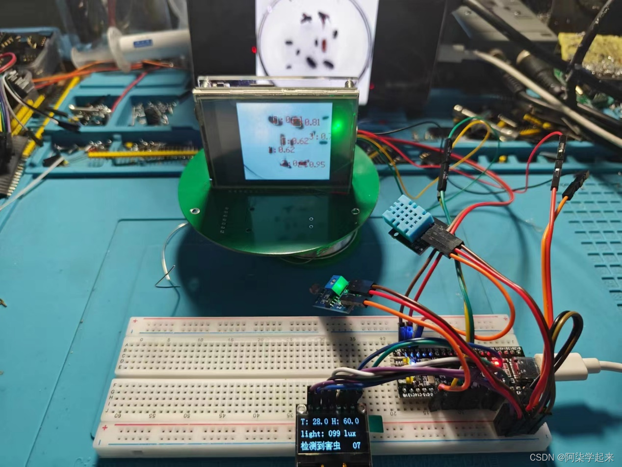 总结如下:硬件端包括STM32F103C8T6作为中控和模块数据通信主控,0.96寸OLED显示环境数据,K210用于反馈检测的结果,光照传感器检测环境光照强度,温湿度传感器检测环境的温湿度情况。这个硬件系统利用各种传感器和控制器,实时监测并显示环境的各项数据,实现环境监测和控制的功能。