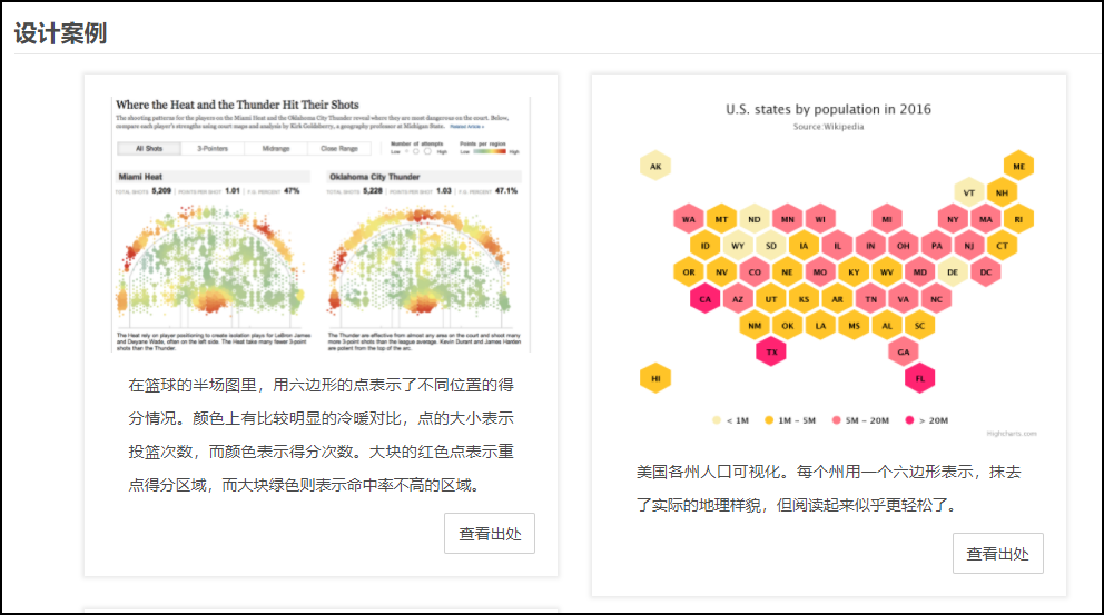 这类图形不是很常见,一般用在哪些地方呢?图之典给出了好几个使用案例,在篮球不同位置的得分情况、美国各州人口可视化等处都可以用到这类图表。