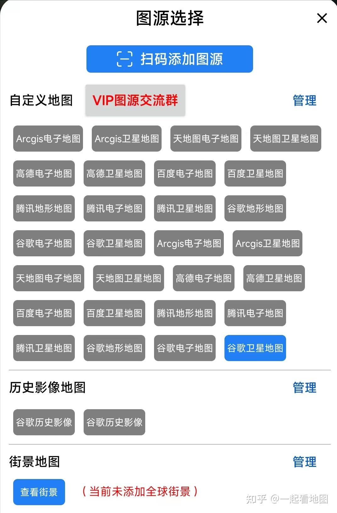 限于zhengce,第一次打开应用仅可以浏览高德和腾讯卫星地图、电子地图等,需要通过“一起看地图”APP的“图源”功能,扫码添加图源。
