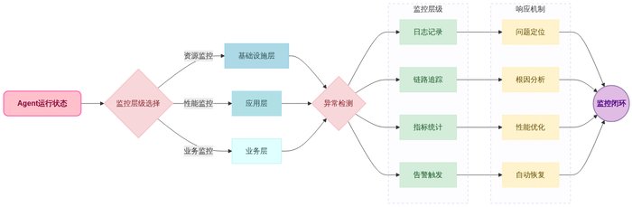 特别重要的是推理链路的可视化监控。由于AI Agent的决策过程具有"黑盒"特性,需要详细记录每一步的输入、中间状态、工具调用和最终输出,支持问题回溯和根因分析。