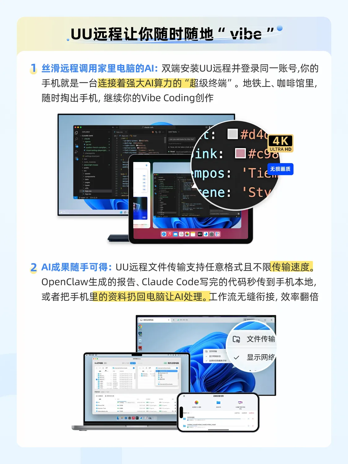 双端安装 UU 远程并登录同一账号,你的手机就是一台连接着强大AI算力的"超级终端"。
