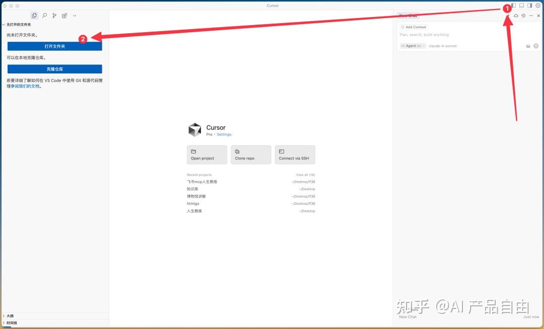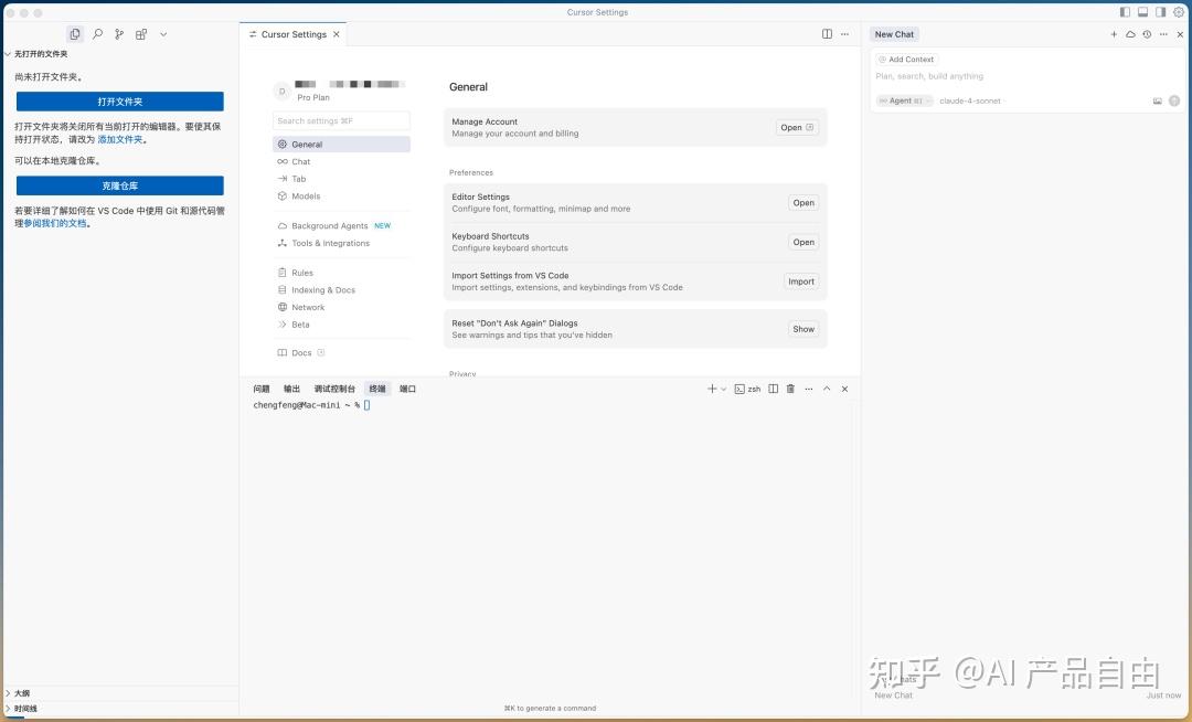 打开Cursor后,你会看到一个全新的界面。