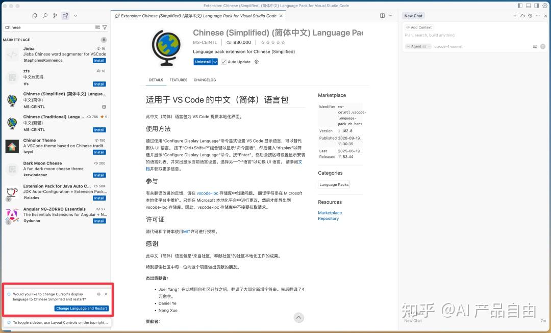 3.搜索框输入“Chinese”,选择“简体中文”插件并安装