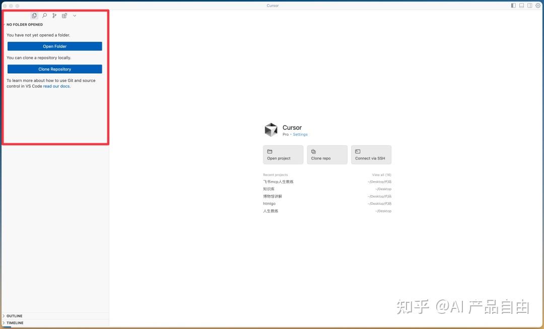 我们就能看到 cursor打开了一个空白文件夹