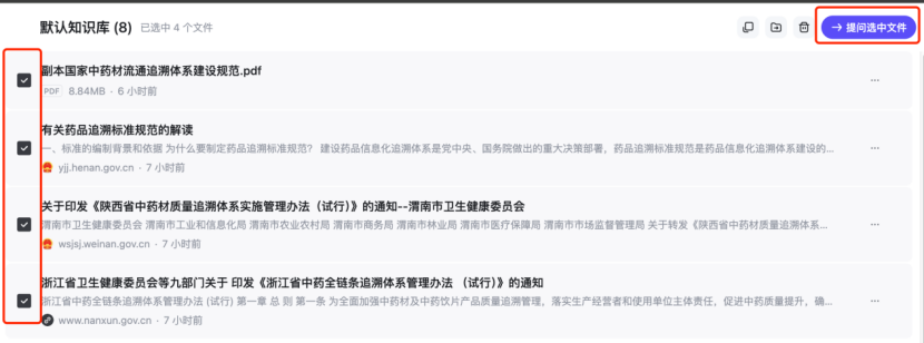 还支持对你收集的网络素材和本地上传的素材进行提问