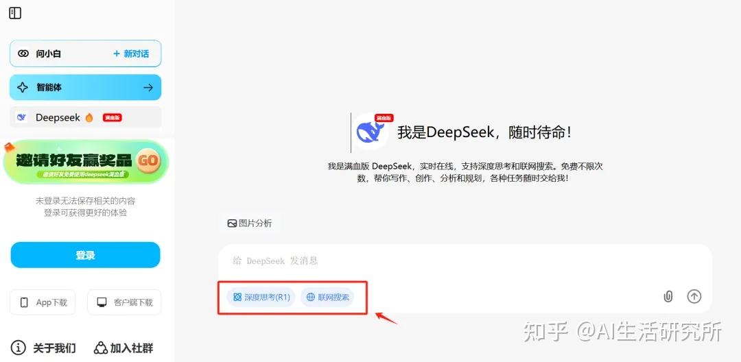 最近新出的一款网页版应用,也可以使用 R1以及联网搜索,也可以支持上传图片进行图片分析。