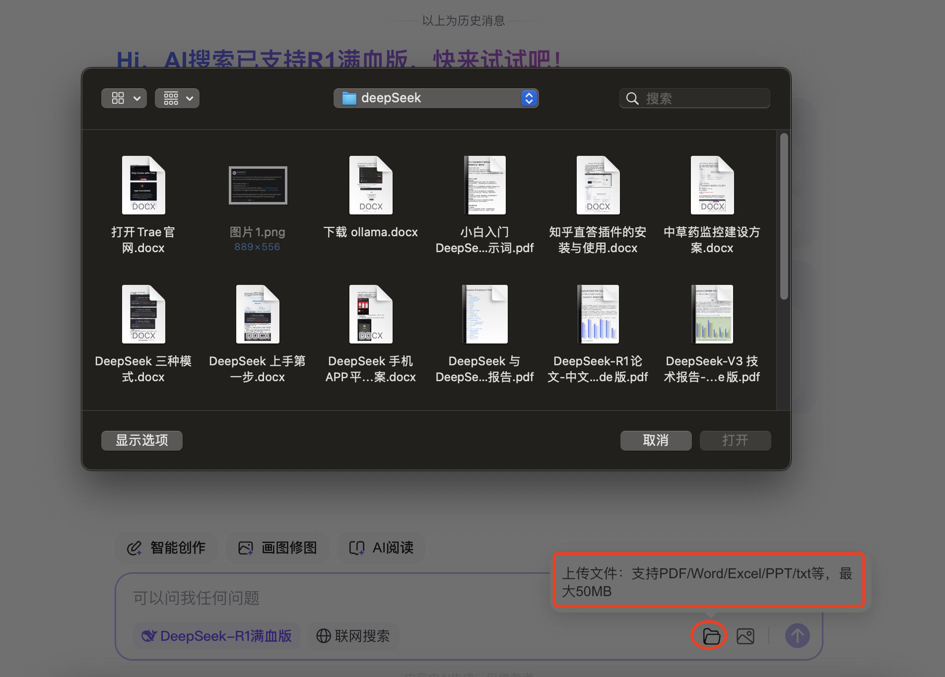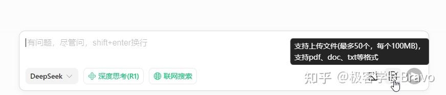 除deepseek官网以外,目前熟悉的还有5款deepseek R1支持上传文档和图片。