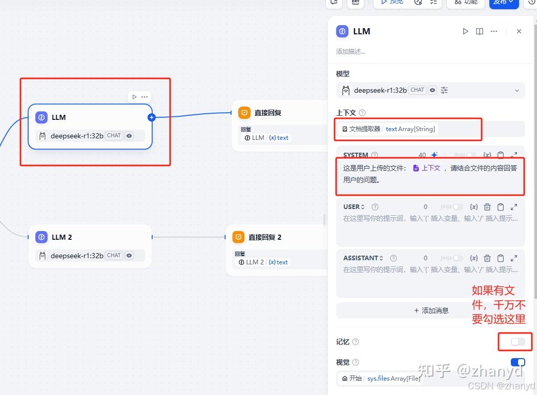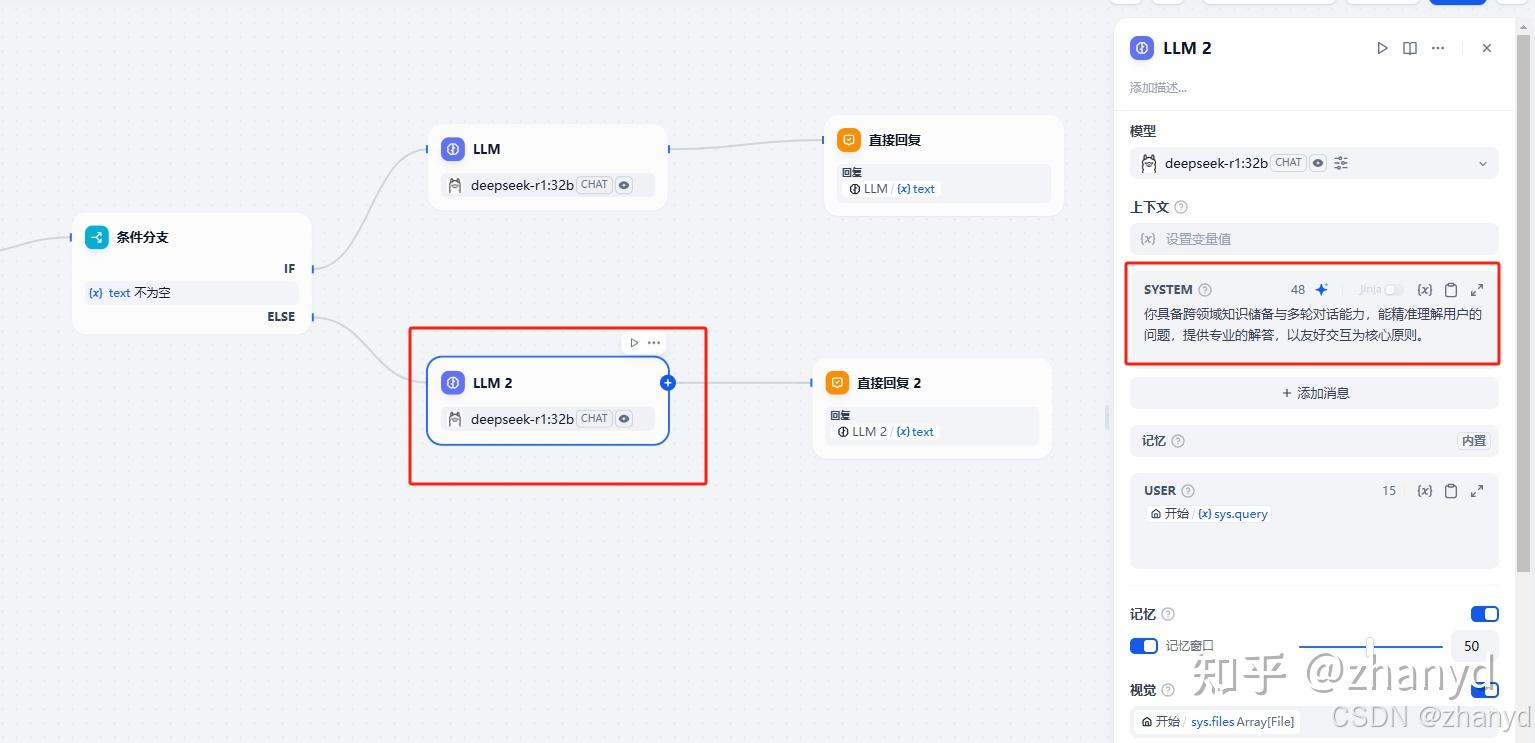如果没有文件上传,添加一个LLM2节点直接回答用户的问题,SYSTEM中添加描述(根据实际情况描述):