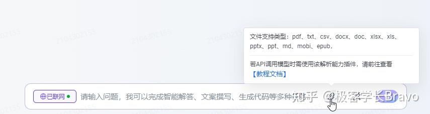 支持的文件类型比较多,包括 pdf、txt、csv、docx、doc、xlsx、xls、pptx、ppt、md、mobi、epub。