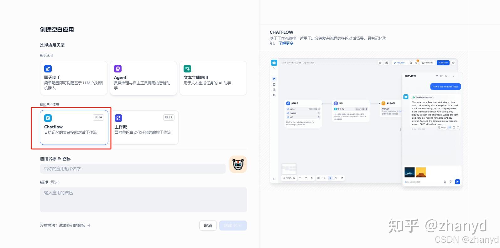 选择Chatflow: