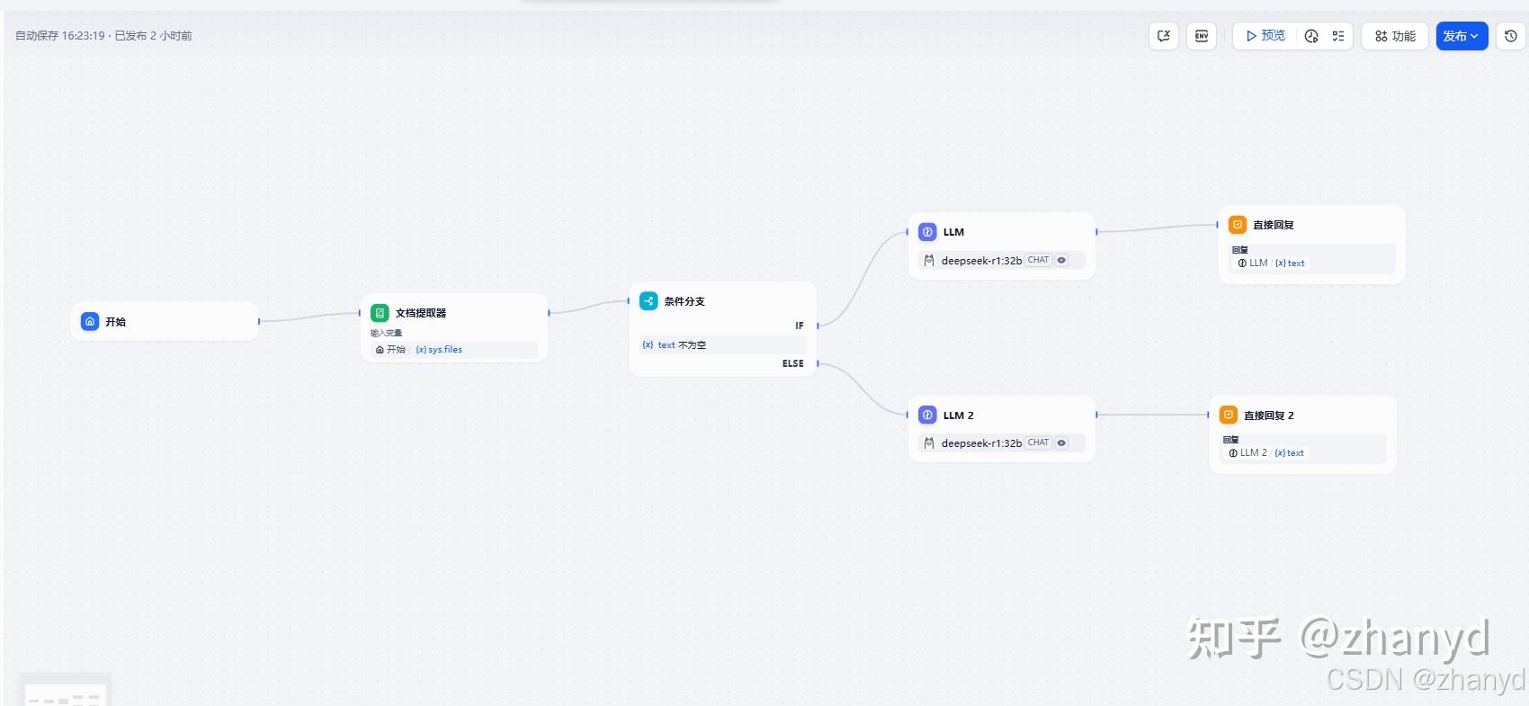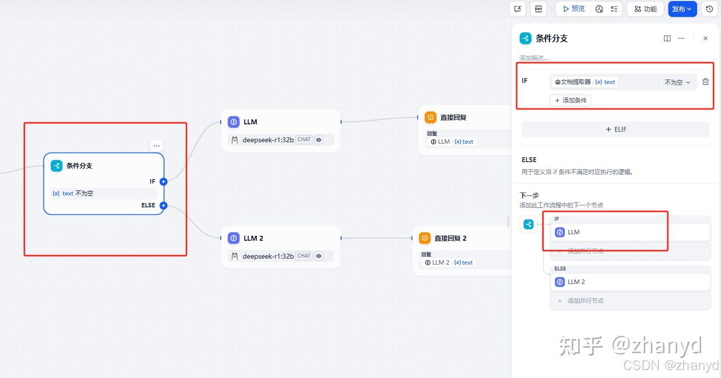 接下来我们要添加一个条件分支,判断用户有没有上传文件,如果上传了文件就引用文件的内容来回答问题,如果没上传文件就直接回答用户的问题。