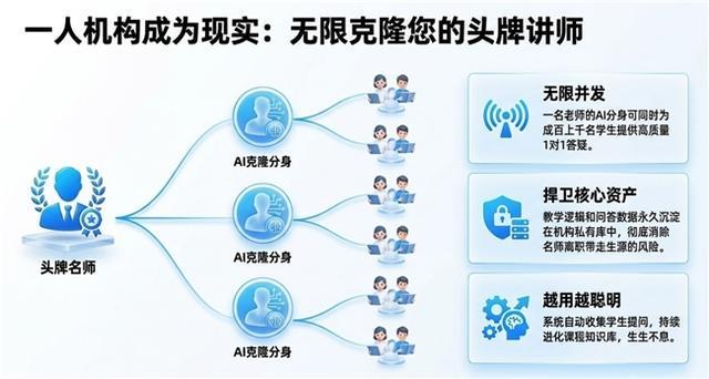 在实际应用中,这种“活”的内容载体展现出了强大的生命力。对于公立学校而言,校长可以利用数字孪生技术实现教师能力的规模化部署。传统的 1 对 1 辅导往往受限于师生比,但在 GKK 的支持下,一位骨干教师的数字分身可以同时为全校上千个学生提供 24 小时在线的个性化辅导。每个学生都能在观看过程中随时打断提问,AI 数字人会基于教师预设的私域知识库给出精准解答,答疑结束后自动引导回原教学进度。