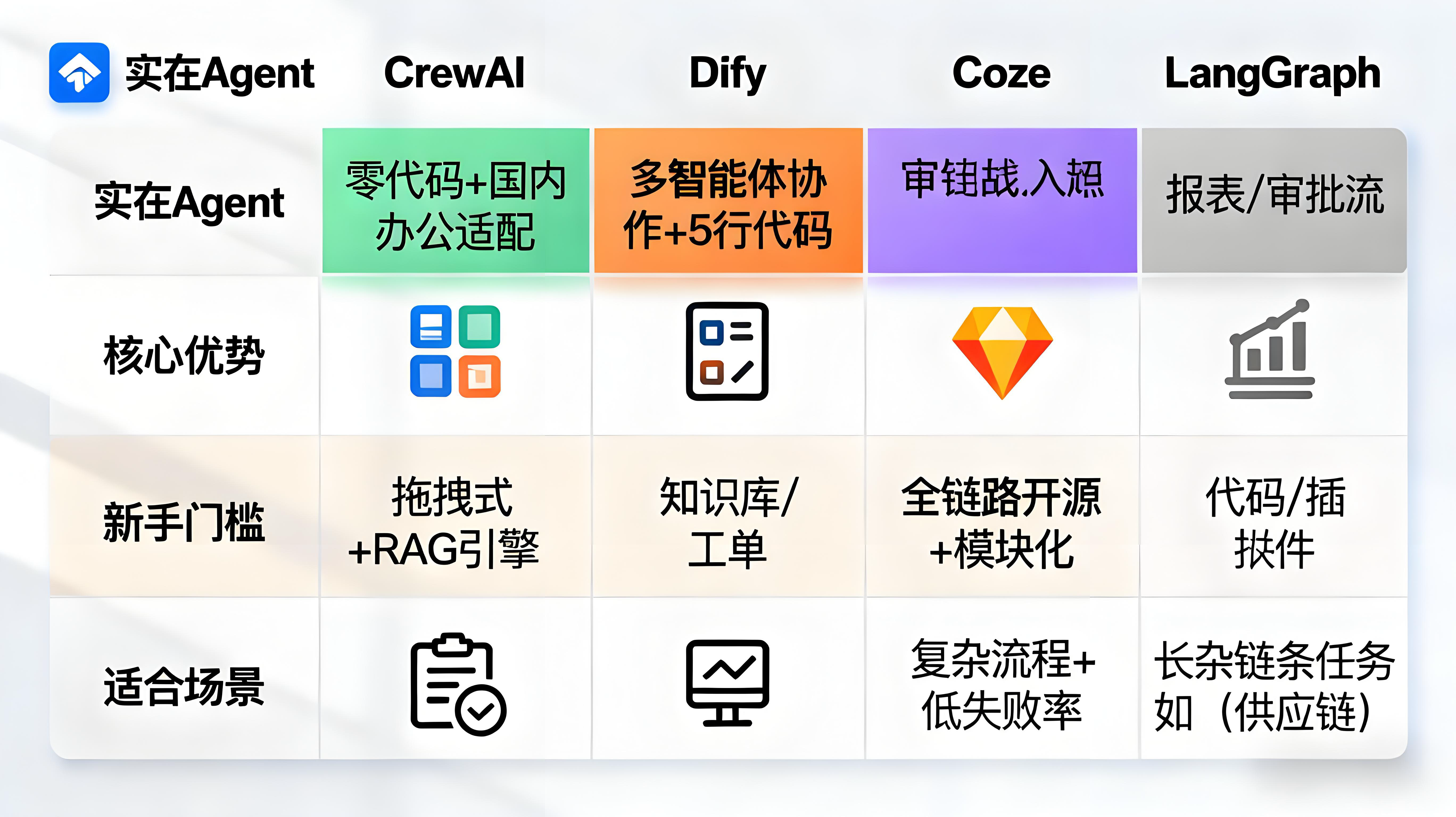 适合想挑战复杂任务的新手,基于 LangChain 框架扩展,以稳定性著称。