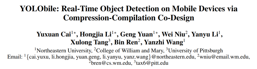 近日,由美国东北大学王言治研究组,威廉玛丽学院任彬研究组和匹兹堡大学汤旭龙老师共同提出了名为YOLObile的手机端物体检测加速框架。YOLObile框架通过“压缩-编译”协同设计在手机端实现了高准确率实时物体检测。该框架使用了一种新提出的名为“块打孔”的权重剪枝方案,来对模型进行有效的压缩。他们还提出了一种高效的GPU-CPU协同计算优化方案来进一步提高计算资源的利用率和执行速度,并在他们的编译器优化技术的协助下,最终在手机端实现高准确率的实时物体检测。相比YOLOv3完整版,该框架快7倍,在手机上实现19FPS实时高准确率目标检测。并且同时准确率(mAP)高于YOLOv3,并没有牺牲准确率提高计算速度。