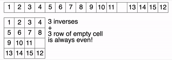 现在,我们来变个魔术。对于将全部的逆序数和空格点所在的行数相加所得的和总是偶数,这样可以定义不变函数I。如果总和为偶数,I则为0,和为奇数,I为1。
