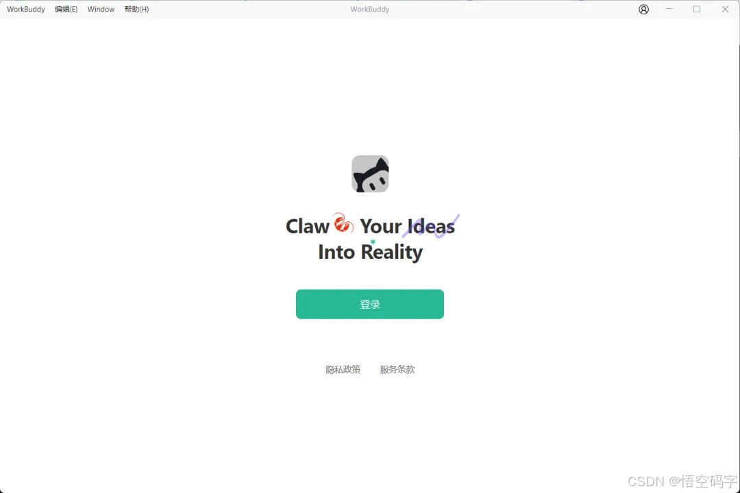 完成安装后,打开WorkBuddy,点击登录,可以使用微信或者手机号注册账号登录即可。