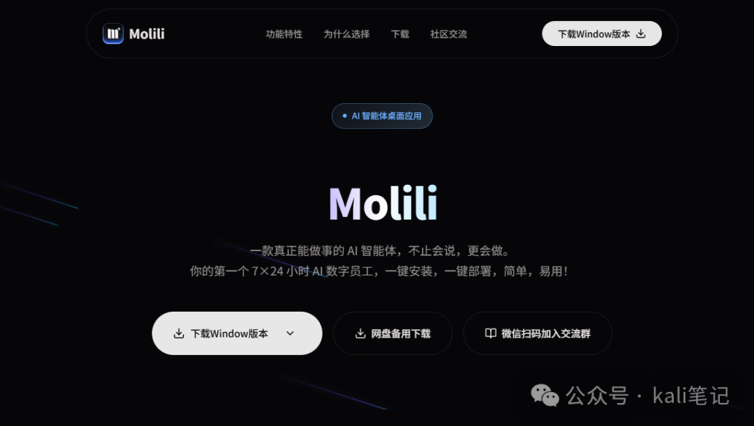 Molili 的安装流程做到了极致简化,彻底告别原版的命令行操作和复杂配置。进入官网https://www.molili.com.cn 下载 Windows 版本安装包,一键安装即可!