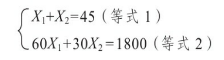 - 步骤1:将等式1做转换:X1=45-X2 然后将转换后的X1代入等式2,并依次求解: