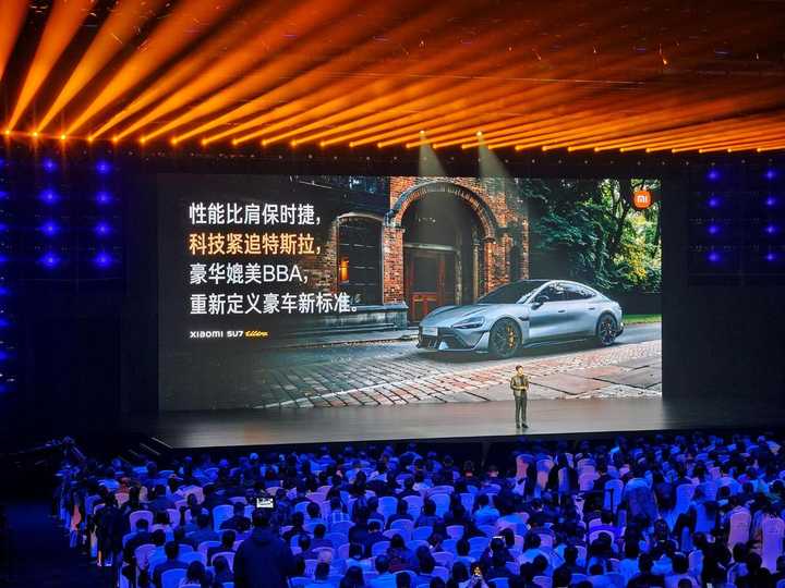 雷总在发布会上喊出的口号是科技紧追特斯拉。
