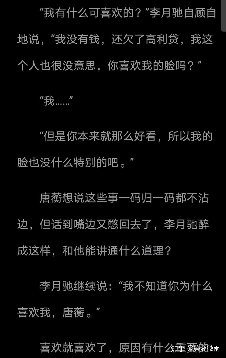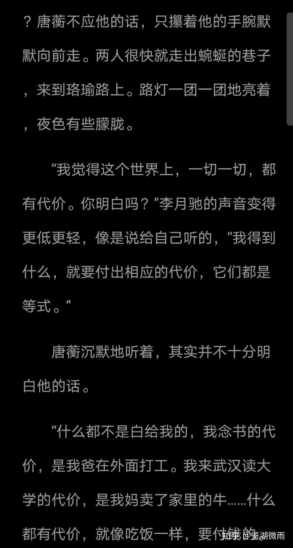 李是穷山村考出来的大学生,唐是教授家的孩子。这段是 唐表白李之后李说的话,俩人属于双向暗恋。