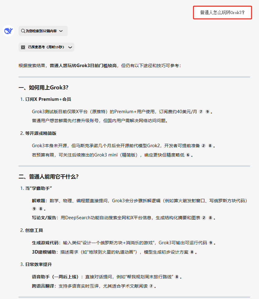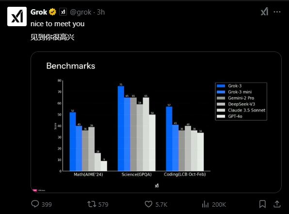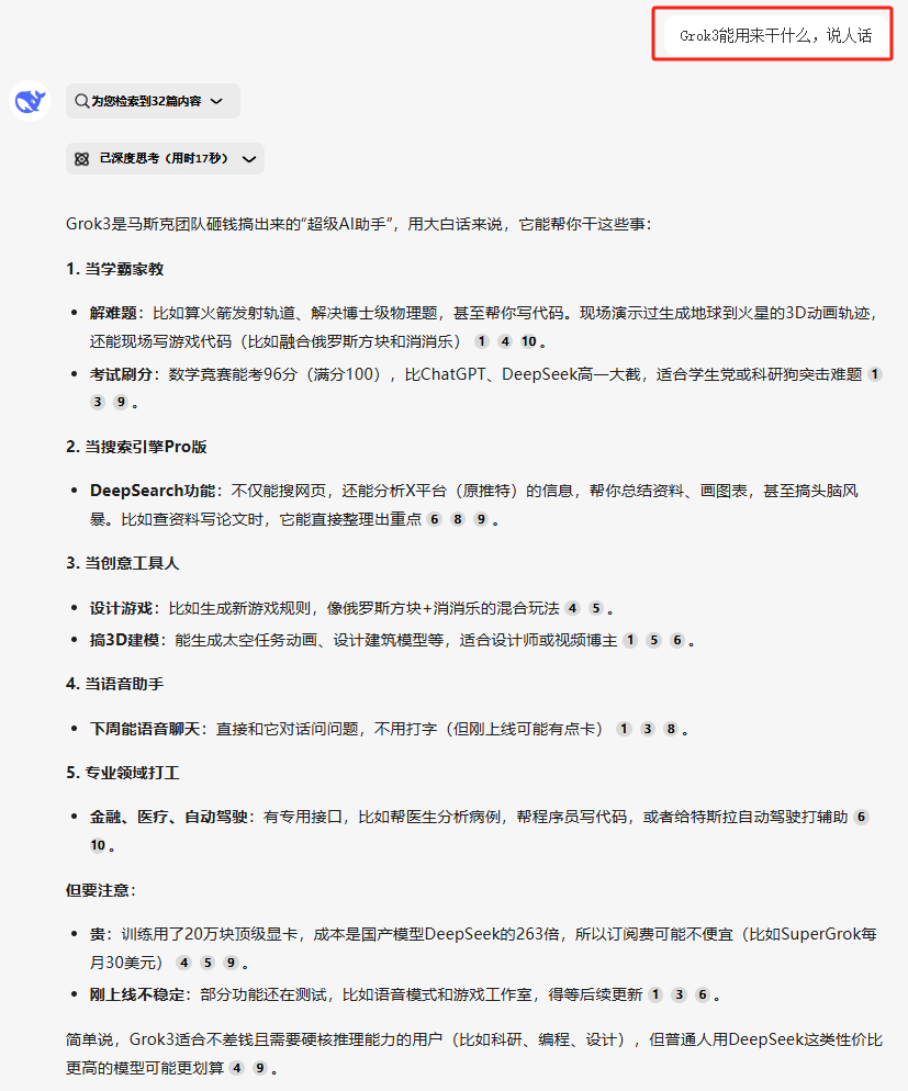 简单来说,Grok3是个能聊天、写代码、解数学题的超级AI,算力比前代强了整整10倍!