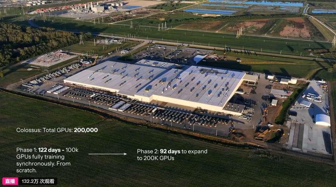 关注度这么高的发布会,马斯克也是忍不住炫耀一下自家的十万卡集群Colossus。