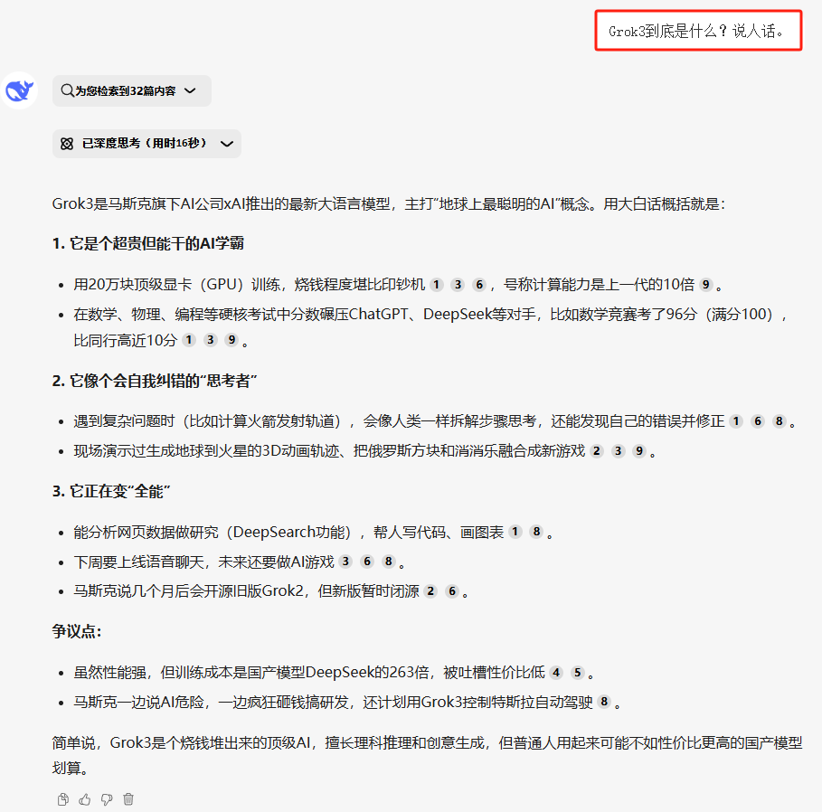 2025年2月18日,马斯克带着Grok3登场,自称这是“地球上最聪明的AI”。