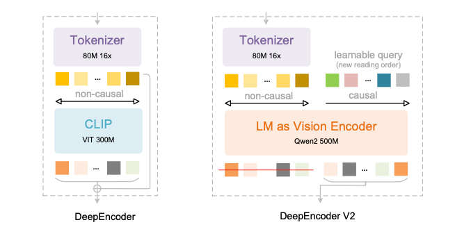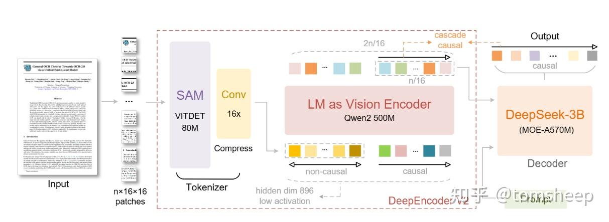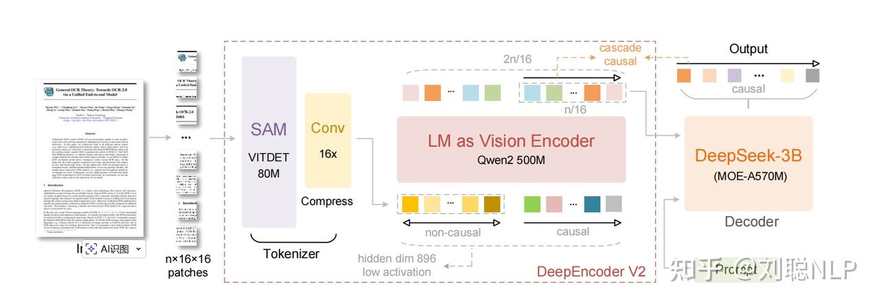 知乎上有个问题是:qwen3-0.6B这种小模型有什么实际意义和用途吗?,我想DeepSeek-OCR-2可以提供一个思路。不过,我好奇为啥它不用Qwen3-0.6B,而使用更早的Qwen2-0.5B