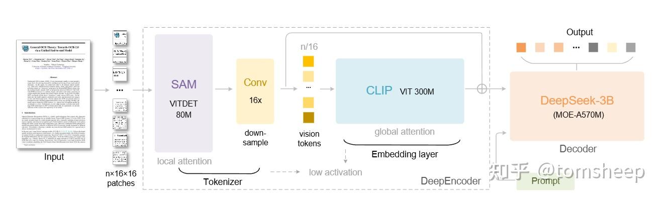 SAM + Conv做前端感知(也就是编码器的前半部分) - 解码器部分仍然是一个 LLM(DeepSeek-3B)