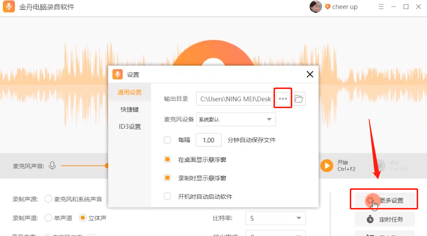 3、接着,可以点击“更多设置”更改文件输出目录;