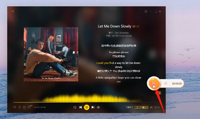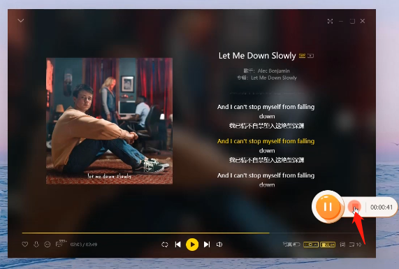 4、录制前,先打开播放需要录制的音乐,然后,点击悬浮框中的“开始”按钮开始录制;