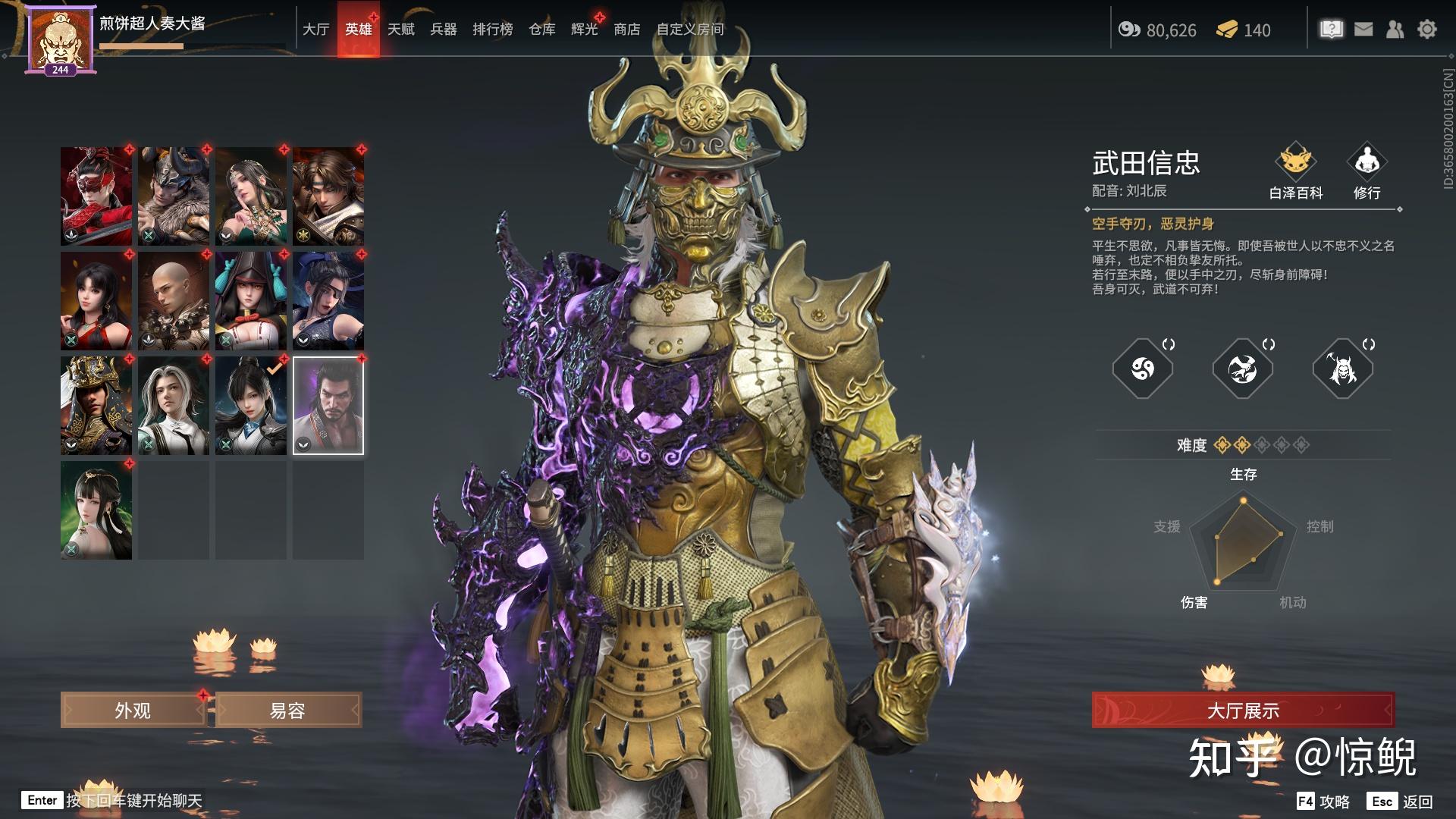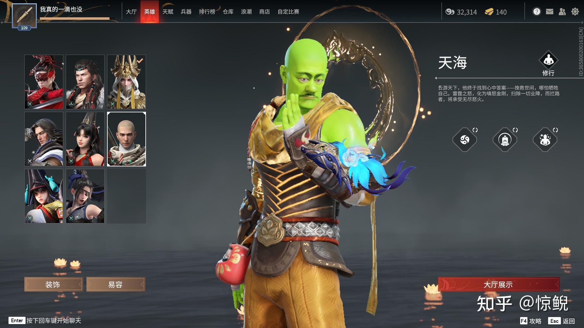 技能推荐:小技能单排F1,组排F1或者F3,F1能在跟对方拼刀的时候降低对方武器耐久,如果对方武器耐久为0,则会直接振刀,F3可以给队友回复护甲,也能挡掉远程伤害,还有大佛的抓;大技能,如果是单排,都可以带;组排优先V1,不过就是要注意V1放的位置,不要太过于显眼,要是传送过来,一堆人蹲着可就难受了。。。。