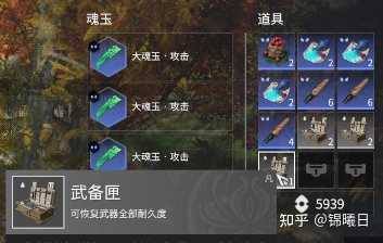 装备匣应该也算是这个游戏中比较特殊的一点,因为在游戏中无论是近战武器还是远程武器,进行战斗都会有所消耗(消耗到0时就用不了了),而装备匣就是用于修补消耗值的。