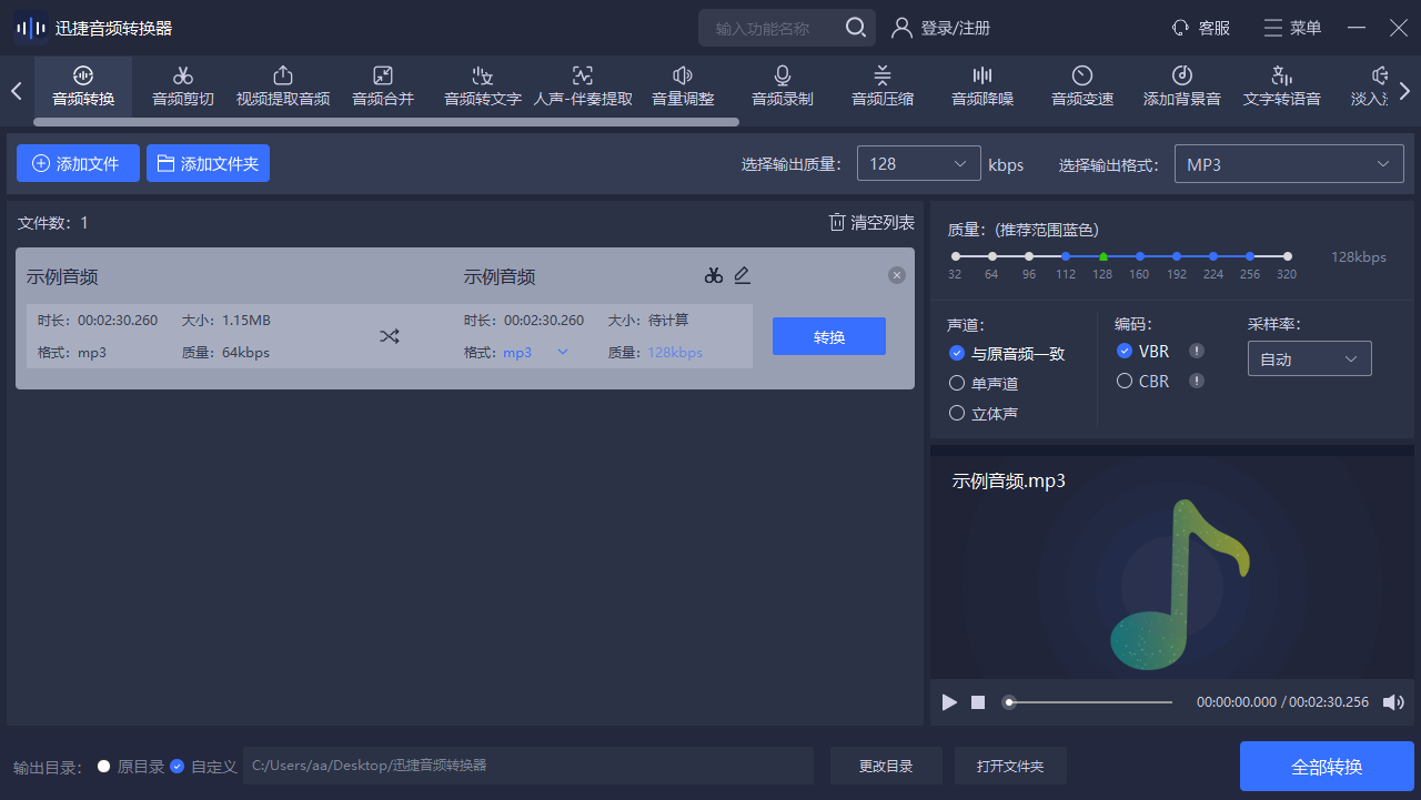 它支持 MP3、WAV、FLAC、AAC 等多种音频格式之间的转换,同时还带有音频剪辑、合并、提取等功能。