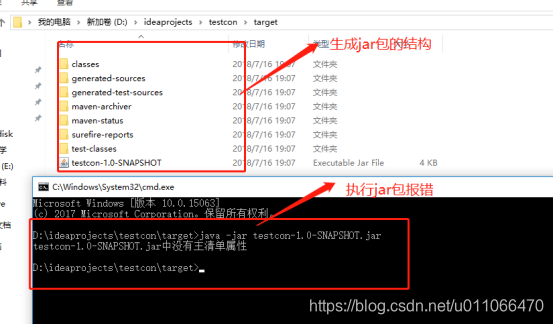 3.执行maven 打包后:报没有主清单,如下图所示: