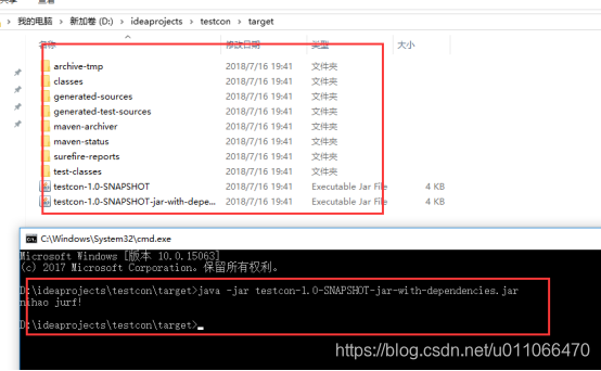 打包后会在target目录下生成一个xxx-jar-with-dependencies.jar文件,这个文件不但包含了自己项目中的代码和资源,还包含了所有依赖包的内容。所以可以直接通过java -jar来运行。