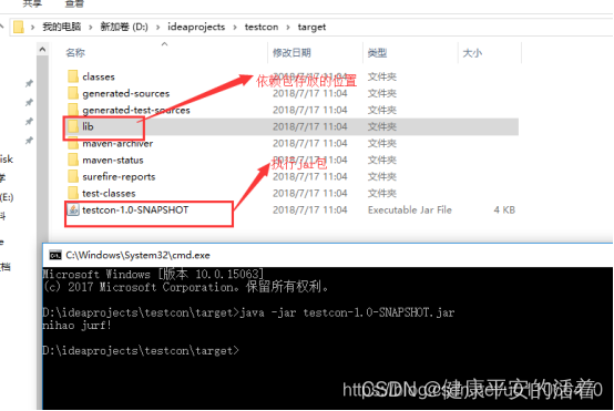 2.执行jar包后的结构:执行jar包后会在target目录下生成jar包,并将依赖包拷贝到target/lib目录下