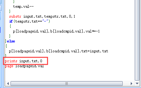 printf("n0.val=666"); //发送命令 printf("\xff\xff\xff"); //发送结束符 printf("n0.val=666\xff\xff\xff"); printf("n0.val=%d\xff\xff\xff",MyData); //一次性发完命令和结束符 printf("t0.txt=\"%d\"\xff\xff\xff",MyTxt); //一次性发完命令和结束符