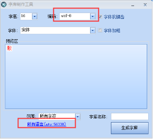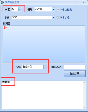 创建字库时,范围选择指定字符,只添加需要的字符