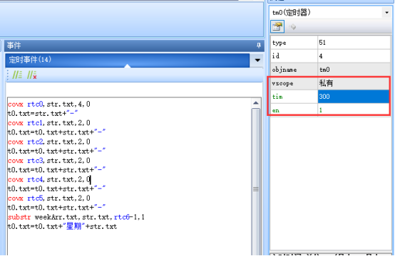 4.在定时器tm0的定时事件中写上如下代码: