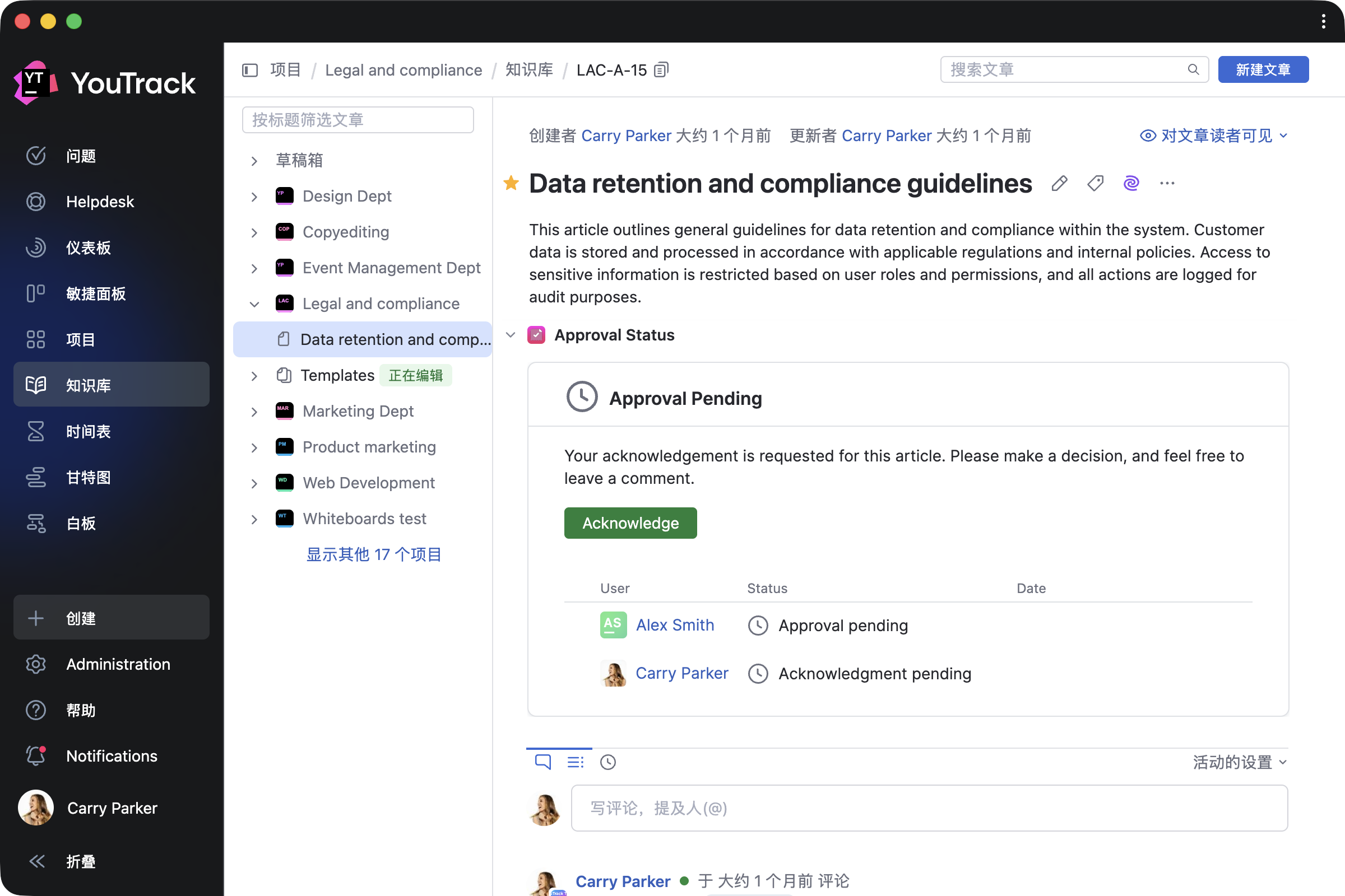 twenty20 提供的 Article Approval 是一款付费应用,允许团队直接在知识库中管理审批工作流。您可以为每篇文章要求审批者和确认者、设置截止日期,以及跟踪审批状态。