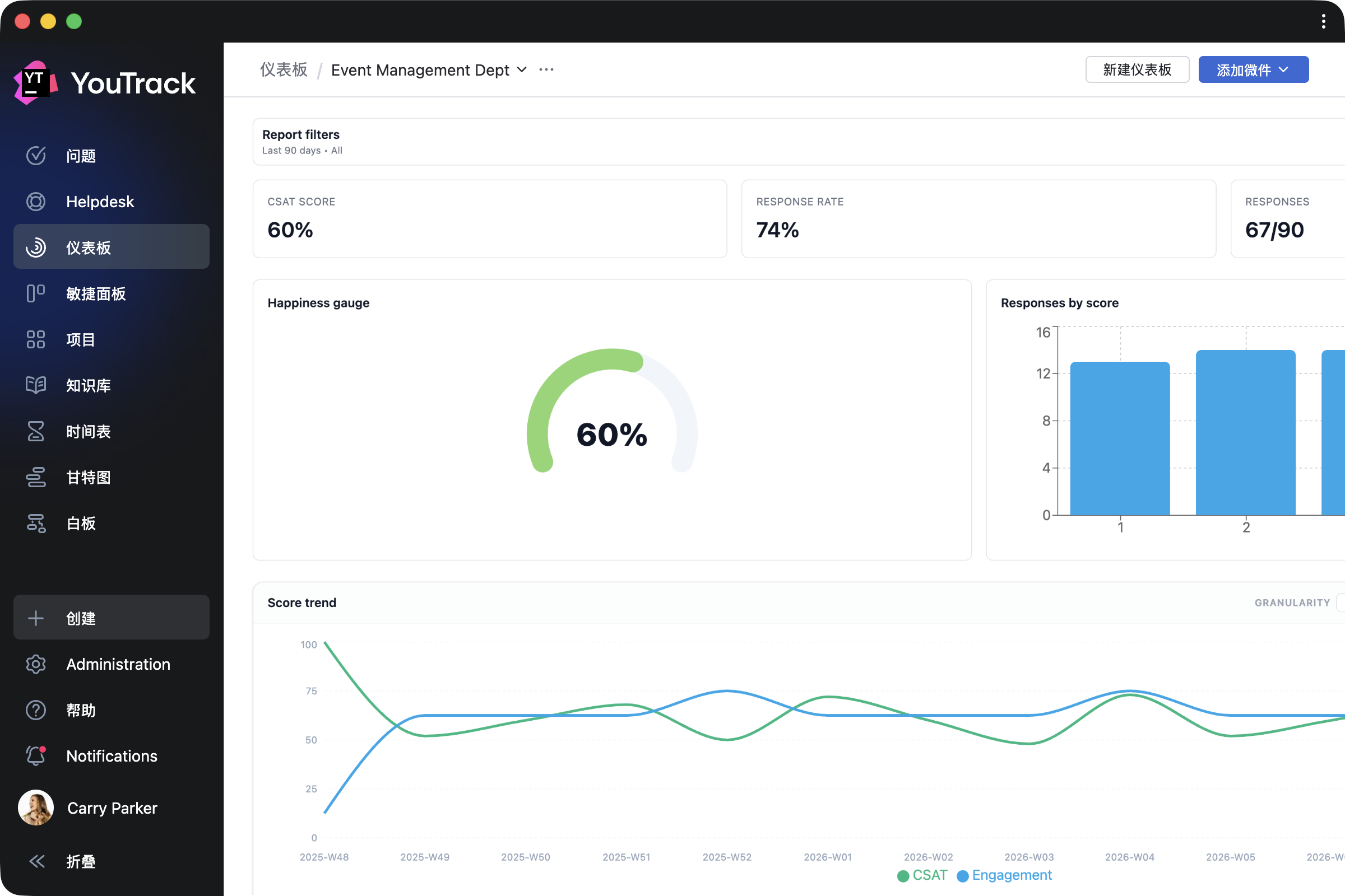 Appfero 提供的 Customer Satisfaction 也是一款付费应用,支持团队通过自动化客户满意度调查 (CSAT) 收集任务执行反馈。直接在 YouTrack 中配置自定义调查流程,并审查回复分析。