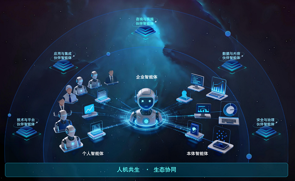 打造“组织即智能体、员工即节点”的分布式智能体网络,如同给企业装上“AI神经系统”,支持在企业级安全管控下组织与组织间、个人与组织间的业务智能协同,实现全域全场景AI能力全覆盖,通过AI全局智能管控,打破组织壁垒,激活企业效能。