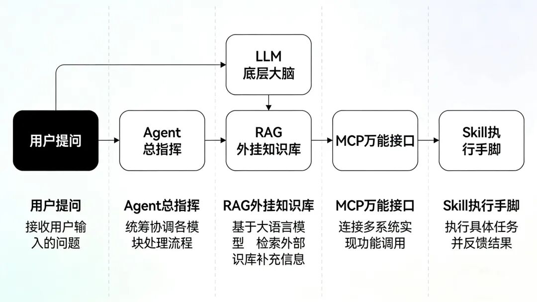 在 Agent + Skill + MCP + RAG 这套架构里: