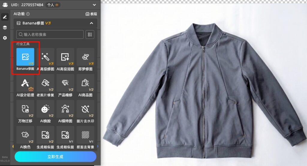 启动 StartAI,点击 「Banana 修图」 → 选择 【专业版 Pro】(衣服专用,质感最优)。