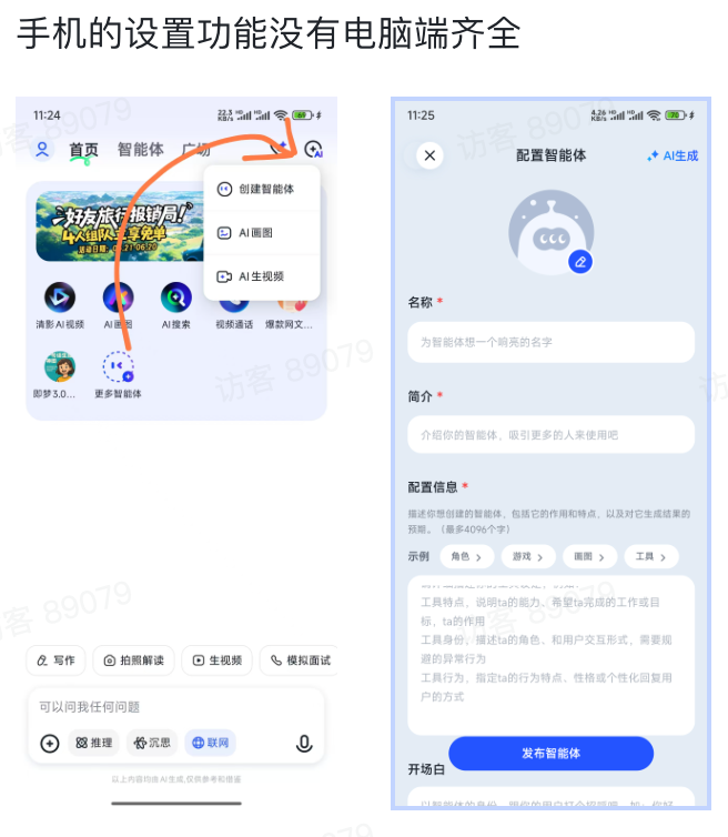 注册账号 -> 创建智能体 -> 取名、选头像 -> 开始调教!
